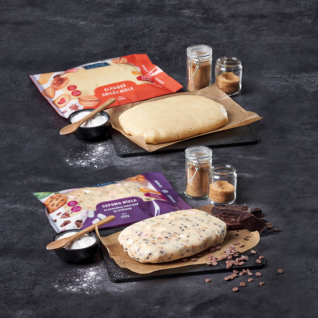 Klasiskā smilšu mīkla un cepumu mīkla ar šokolādes gabaliņiem un zefīriņiem